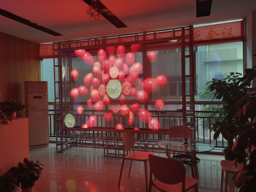 1柔軟な透明フィルムとしてLEDディスプレイ機能キャリアボード,モジュールの厚さは2MM未満であり,フレームをインストールする必要はありません.モジュールは直接ガラスの表面に固定され,インストールが完了します., 室内でのポストロード用途に適しています.