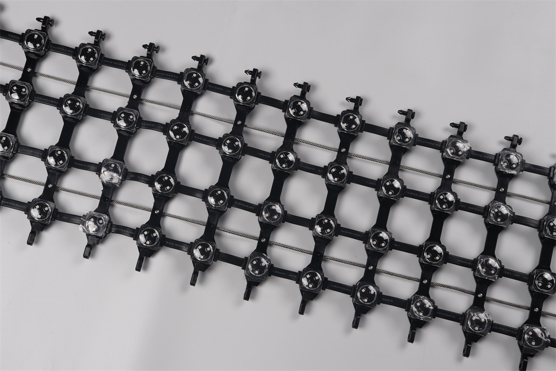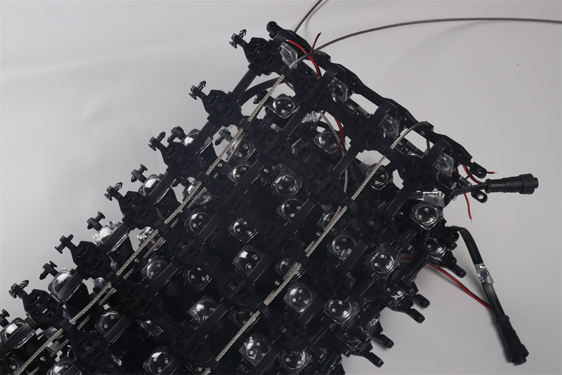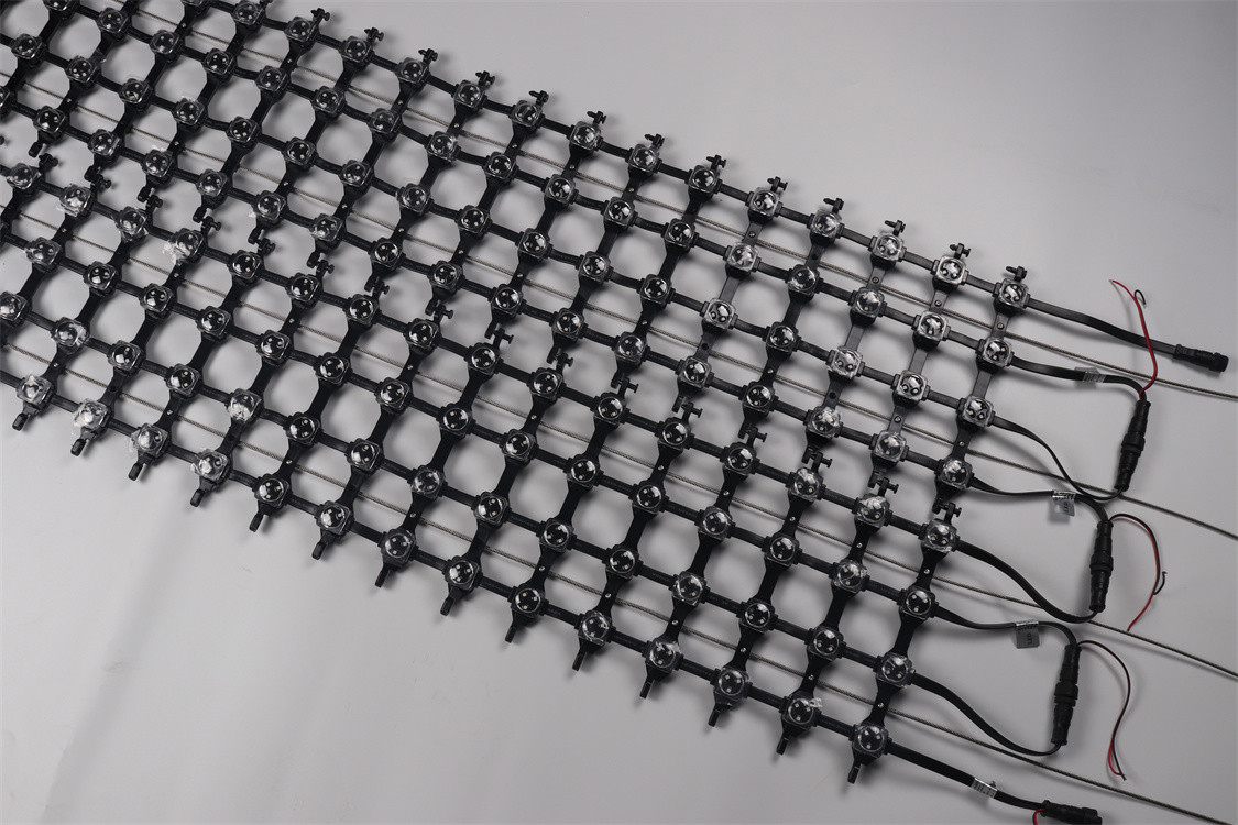 A: LED メッシュカーテンは,ケーブルで接続されている個々のLEDパネルで構成されています. LEDパネルは,制御システムに接続され,明るさを制御することができます.色画面のパターンです